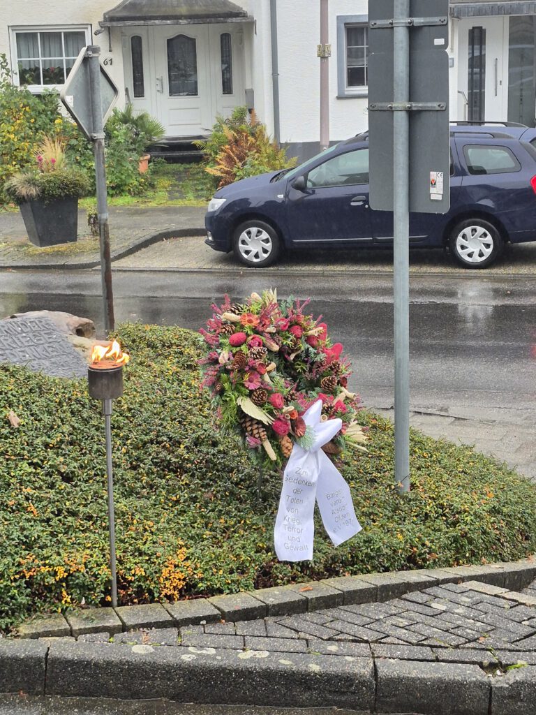 Traditionell legt der Bürgerverein Alsdorf-Ofden, am Volkstrauertag einen Kranz zum Gedenken an die Opfer von Gewalt und Krieg nieder.